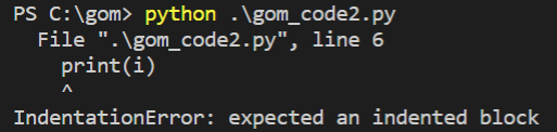 들여쓰기 규칙을 지키지 않으면 아래와 같이 에러가 발생합니다.