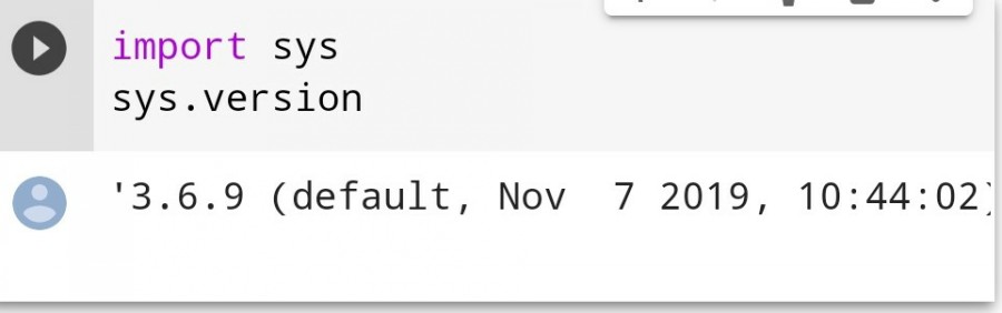 sys.version 기능을 실행하면 이용된 파이썬 버전을 출력해 줍니다. collab에서는 3.6.9로 나오네요