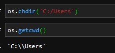 os.chdir() 입니다. 명령어 프롬프트의 cd 기능과 같아요 ~ ,~